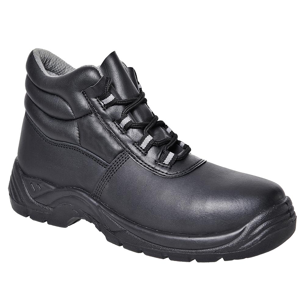 Split leather upper, PU/PU outsole, composite teo-cap and mid-sole, comfortable & hardwearing.
