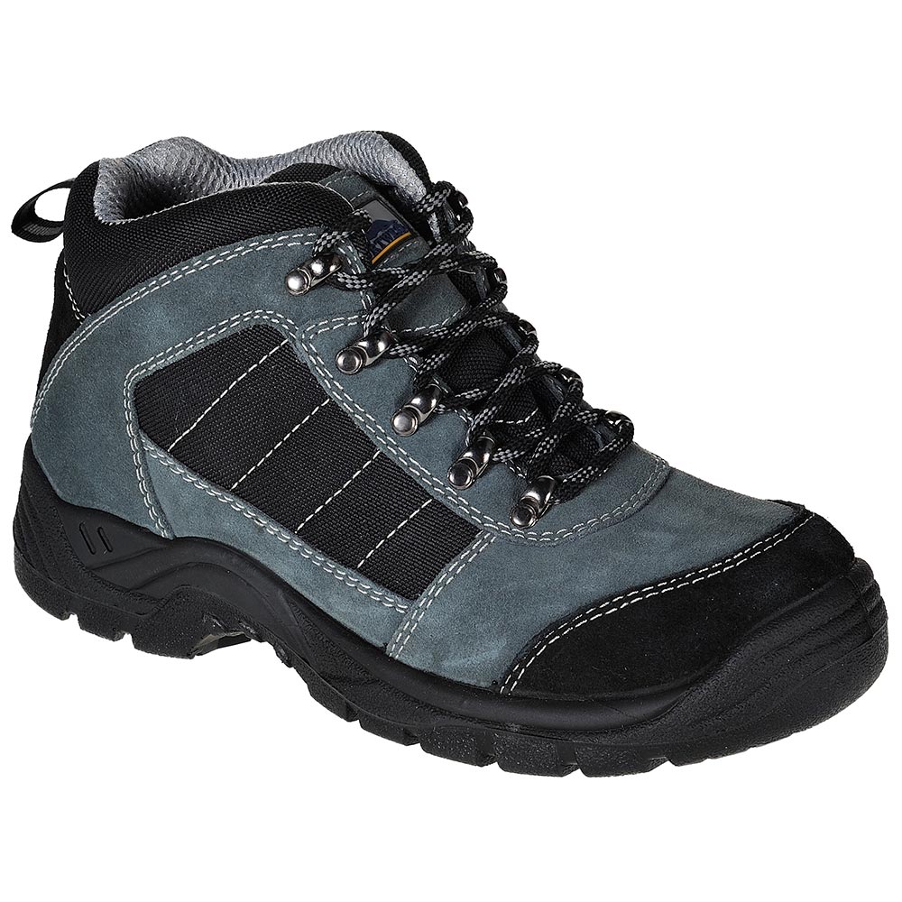 Cow suede leather upper, PU/PU sole, steel toe-cap & midsole, breathable inner lining, closed eyelets.