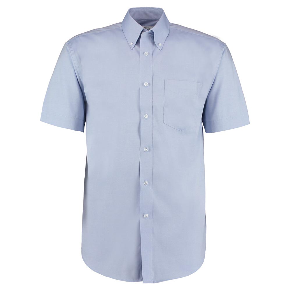 125GSM, 85% cotton/15% polyester, Easy iron fabric, Fused, stand up button down collar, Left chest pocket, Back yoke with centre pleat and hanging loop, Curved hem.