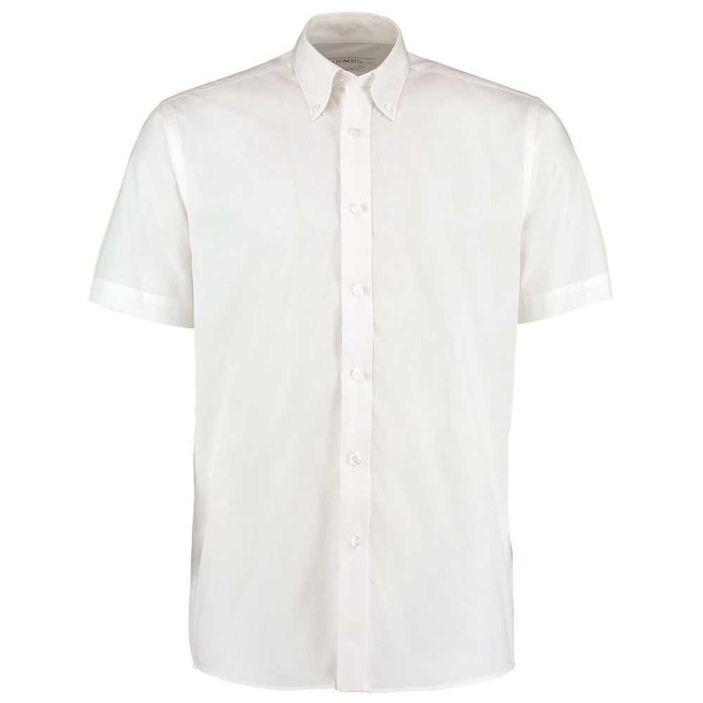 115GSM, 65% polyester/35% cotton poplin, Easy iron fabric, Fused stand up button down collar, Optional pocket, Back yoke with two pleats, Double folded seams, Self colour pearlised buttons, Curved hem, Available in long sleeve K140.